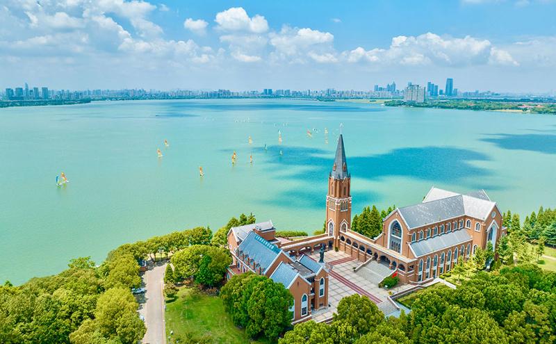 而在賽段的另一側,白鷺園里臘梅山茶兀自綻放,哥特式的基督教堂屹立湖畔,孤獨的一棵樹自成風景,獨墅湖畔的好風光寧靜平和。