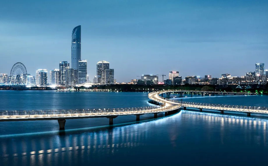 沿著賽道,金雞湖這顆城市明珠熠熠生輝。這里不僅有蘇州文化藝術中心、誠品生活蘇州等文化地標,還有飛翔雕塑、環湖驛站等新晉網紅,更能一探“蘇州之眼”、蘇州當代美術館的芳容。