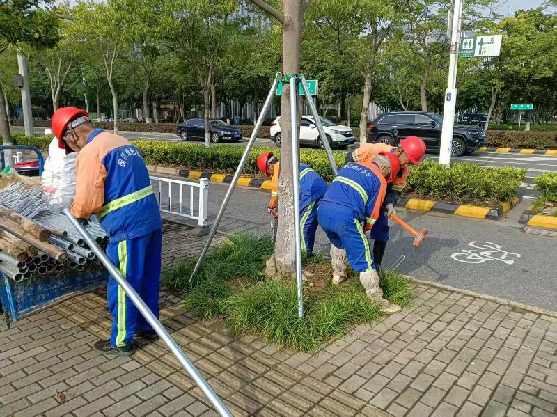 全面排查并完成高大易倒伏喬木的加固支撐和安全處置。對2500余棵樹冠較大喬木進(jìn)行梳枝修剪,整理并加固帶有支撐的喬木6500余棵,預(yù)備500副鋼管支撐,組建倒伏苗木處置隊伍。加固或拆除高空構(gòu)筑物、工地圍擋等設(shè)施,消除傾倒隱患,排查公共停車場等地下空間的安全運行情況。開展全區(qū)路燈、景觀燈、廣告牌及交通設(shè)施巡查加固,嚴(yán)防高空墜物風(fēng)險。在公園等臨水區(qū)域設(shè)置警戒線,同步加強(qiáng)保安巡查頻次。