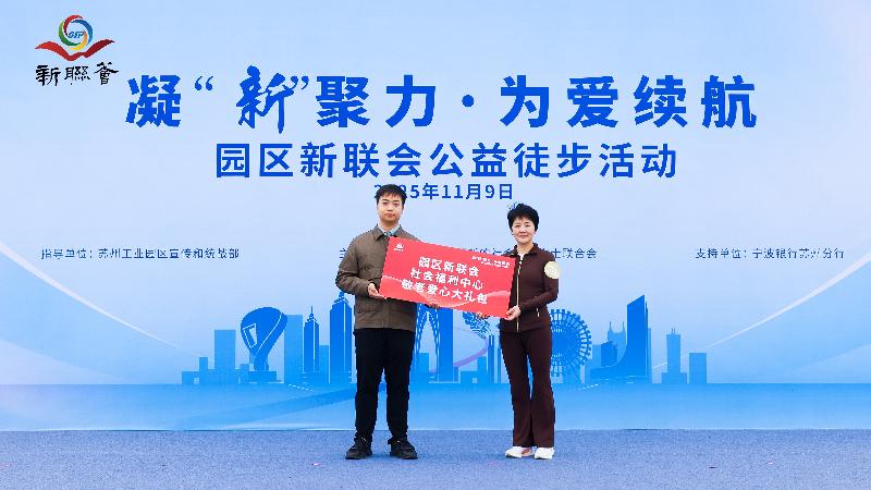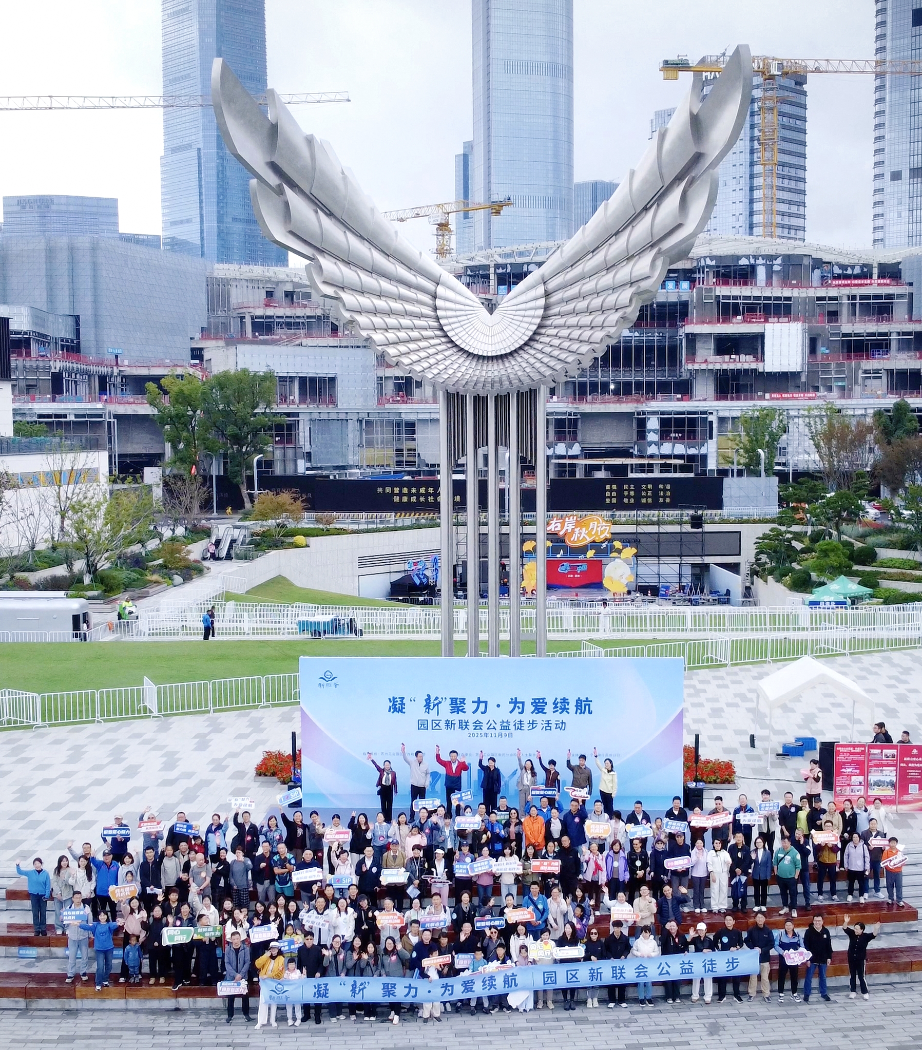 11月9日上午,凝“新”聚力為愛續(xù)航——園區(qū)新聯(lián)會公益徒步活動在金雞湖景區(qū)“飛翔”雕塑廣場啟幕。來自蘇州工業(yè)園區(qū)新的社會階層人士聯(lián)合會(以下簡稱“園區(qū)新聯(lián)會”)成員及其他園區(qū)統(tǒng)一戰(zhàn)線成員約150人齊聚于此,以徒步踐初心,用行動傳溫情。