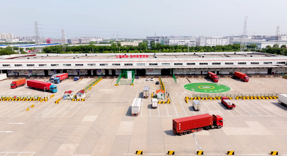 上海機場—蘇州前置貨站由蘇州工業園區管委會與上海機場集團、中國東航集團合作打造,由蘇州港航集團建設運營,是全國首個跨省市、跨關區航空前置貨站,于今年4月正式啟用,通過在前置貨站和上海機場之間開展安全、高效、有序的航空貨物地面駁運業務,將上海浦東國際機場的海關查驗和安檢、組板等貨站功能前置至蘇州。截至目前,蘇州前置貨站已與國內外28家航空公司達成合作,服務生產企業65家,出口范圍覆蓋全球37個國家和地區。