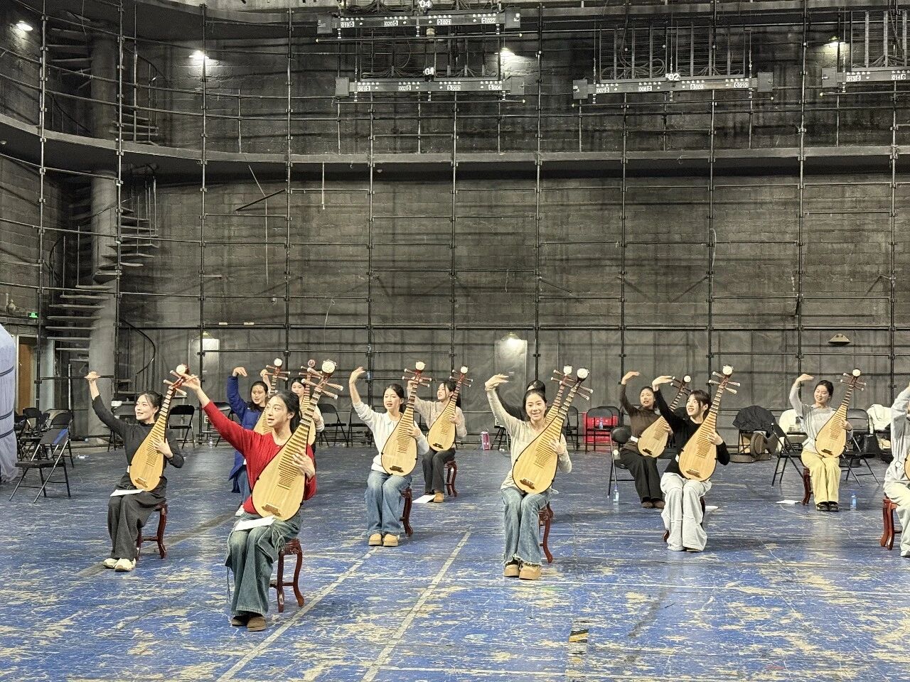 自收到央視春晚邀請后,學校第一時間精挑專業(yè)功底扎實、舞臺表現(xiàn)力出眾的學子,組建師生團隊奔赴北京,開啟為期一個多月的高強度集中排練。排練期間,學生們一遍遍打磨細節(jié),從唱腔韻律到儀態(tài)動作,每個環(huán)節(jié)都精益求精,盡管排練強度大、要求高,但是她們始終保持著飽滿的精神面貌,全身心投入排練中。