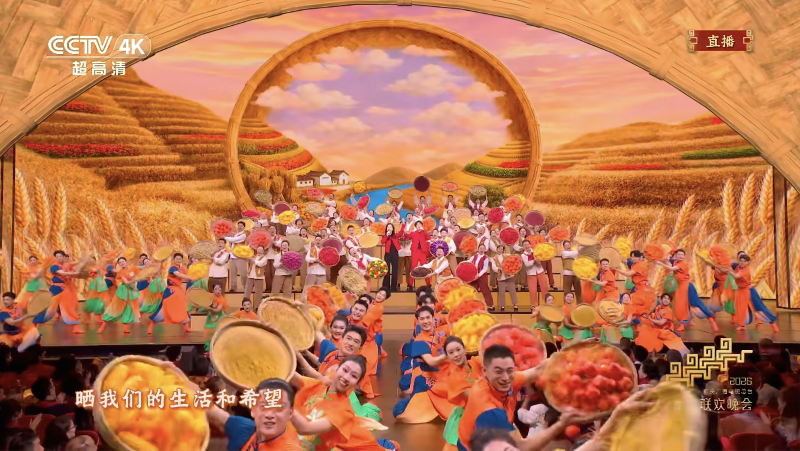 在北京主會場《來曬秋》節(jié)目中,農(nóng)民合唱團帶著豐收的喜悅登上春晚舞臺,沉甸甸的笸籮、金黃的稻穗、火紅的辣椒繪就秋收好“豐”景,質樸歌聲與濃濃年味打動人心。晚會以真摯情懷歌頌時代發(fā)展、唱響人民幸福生活,背后是導演組在節(jié)目編排、舞臺呈現(xiàn)、技術融合上的精益求精,全力打造一臺貼近生活、溫暖人心的“人民的春晚”。