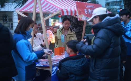 游園會特別設置的非遺文化體驗區(qū)成為人氣最旺的打卡點。領花燈的攤位前排起長龍,孩子們興奮地踮起腳尖,栩栩如生的生肖金馬燈、憨態(tài)可掬的湯圓娃娃燈……一盞盞花燈流光溢彩,映照出人們對美好生活的期許。便民服務區(qū)同樣暖意融融。口腔檢查攤位前,醫(yī)護人員耐心講解護牙知識;中醫(yī)攤位旁,專業(yè)醫(yī)師細致把脈問診,為居民提供貼心的健康建議;最熱鬧的當屬湯圓派送點,志愿者們現(xiàn)場熬煮,將一碗碗熱氣騰騰的甜糯送到居民、外賣員和快遞員等新就業(yè)群體手中,既暖了胃更暖了心。