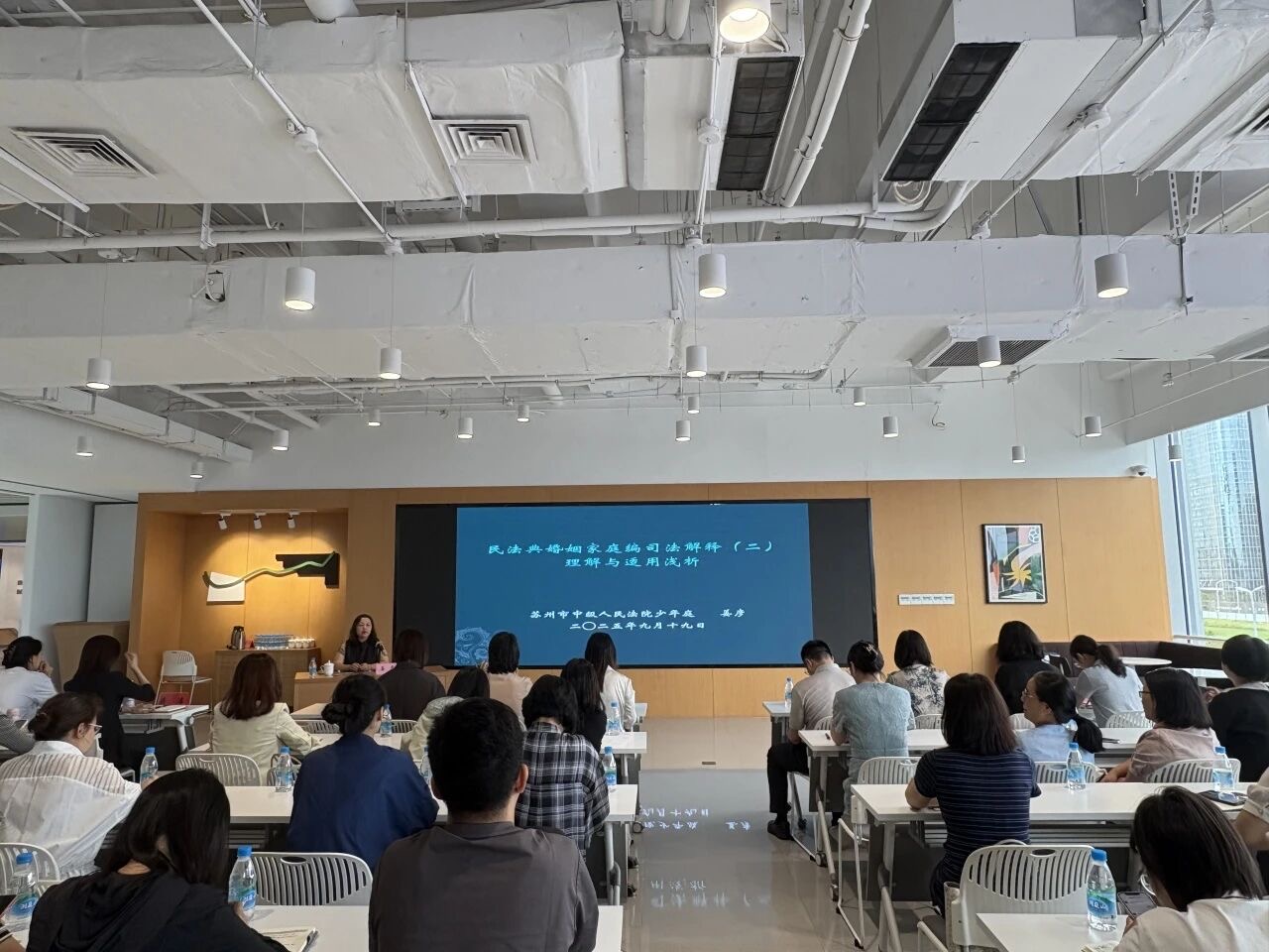 本次培訓邀請了蘇州市中級人民法院未成年人案件綜合審判庭庭長、園區“家和”親情調解中心項目負責人及園區東沙湖法庭法官三位資深專家開班授課。課程圍繞調解技巧創新、法律理解適用、典型案例解析等內容,結合婚姻家事調解工作實際和經驗,分享調解技巧和實用方法,引導參訓學員深刻認識家庭婚戀糾紛調解工作的重要性,增強法律知識儲備與實踐應用能力。現場參訓學員紛紛表示,培訓內容貼近實戰、收獲頗豐,對如何更有效地開展家庭婚戀糾紛調解工作、規范調解程序具有重要指導作用。