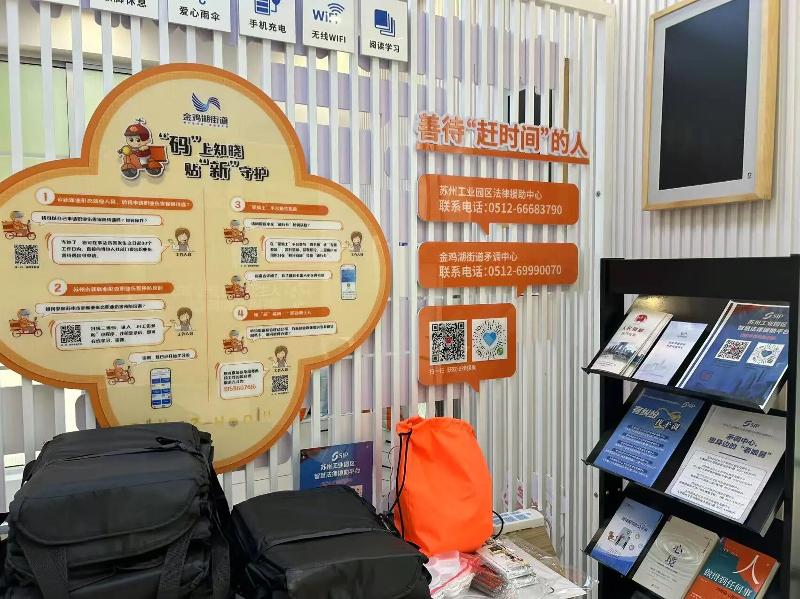 街道以需求為導向,推動普法從“單向”向“雙向”轉型。結合本年度農(nóng)民工學法活動周、民法典宣傳月、安全生產(chǎn)月、暑期送清涼等重要節(jié)點,發(fā)動社區(qū)開展集中普法宣傳6批次,累計發(fā)放普法資料2000余份。通過微信群、公眾號等線上渠道,推送街道自制《新就業(yè)形態(tài)勞動者權益保護普法手冊》、調(diào)解宣傳案例等實用信息,不斷豐富學法途徑。同時,鼓勵騎手化身“流動普法員”,通過在外賣箱上貼法治標語等形式,營造“流動”普法氛圍。此外,依托“城市新客廳”及太平金融大廈“星”騎士加油站等暖“新”驛站增設“學法圖書角”,擺放《人民調(diào)解服務指南》《外賣行業(yè)法律風險防范手冊》等材料,供新就業(yè)群體在工作休息之余隨手翻閱、隨時取用。