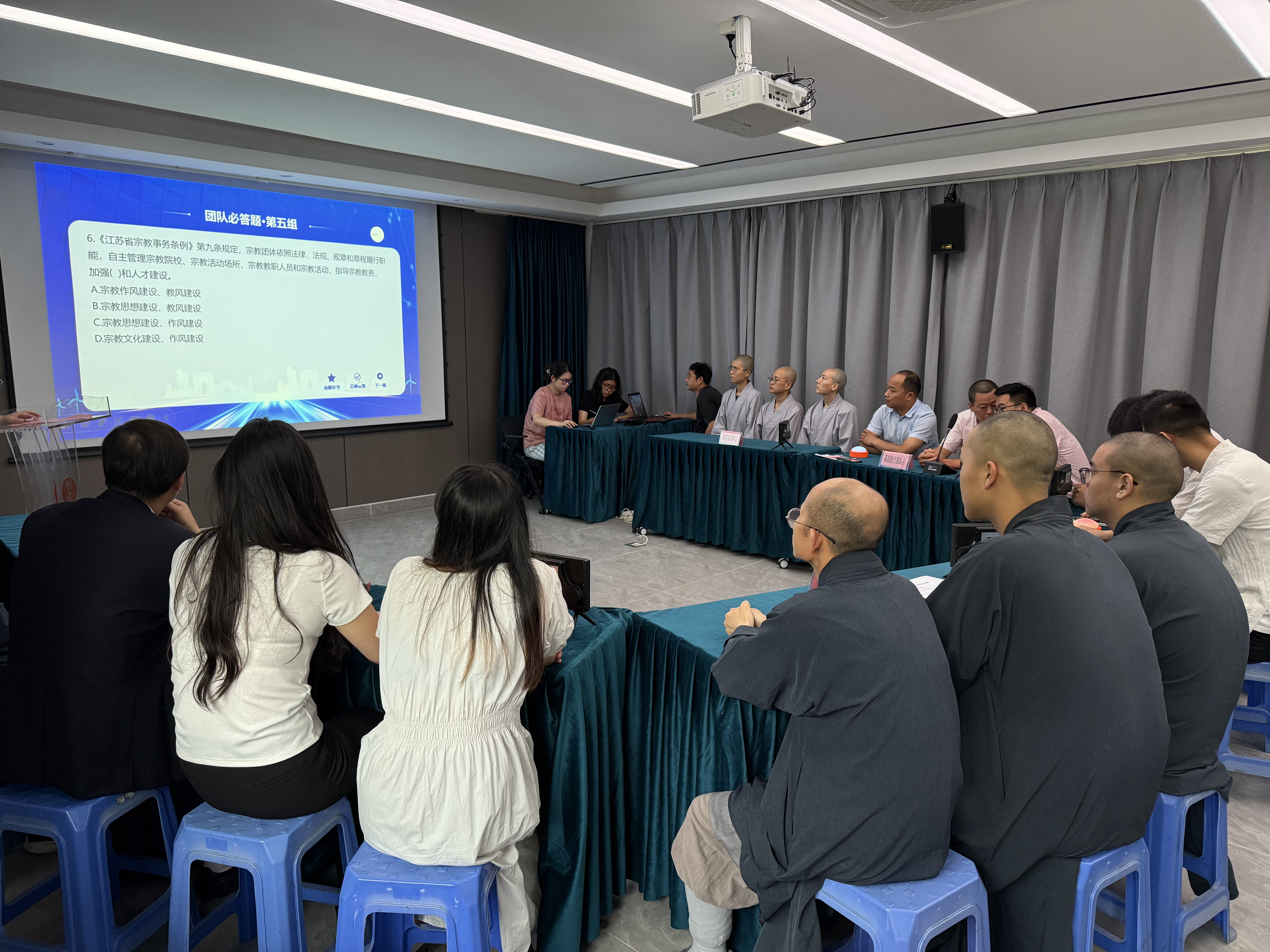 活動(dòng)現(xiàn)場(chǎng),舉辦了園區(qū)民宗政策法規(guī)知識(shí)競(jìng)賽,園區(qū)佛教協(xié)會(huì)、道教協(xié)會(huì)、天主教愛國(guó)會(huì)、基督教三自愛國(guó)會(huì)、江蘇佛學(xué)院寒山學(xué)院和江蘇佛學(xué)院清涼學(xué)院各自組建代表隊(duì)參賽,現(xiàn)場(chǎng)六支代表隊(duì)參賽選手在答題環(huán)節(jié)展現(xiàn)出扎實(shí)的法治知識(shí)素養(yǎng),體現(xiàn)了園區(qū)宗教代表人士積極學(xué)習(xí)民宗政策法規(guī)的積極態(tài)度和奮發(fā)進(jìn)取的精神面貌。