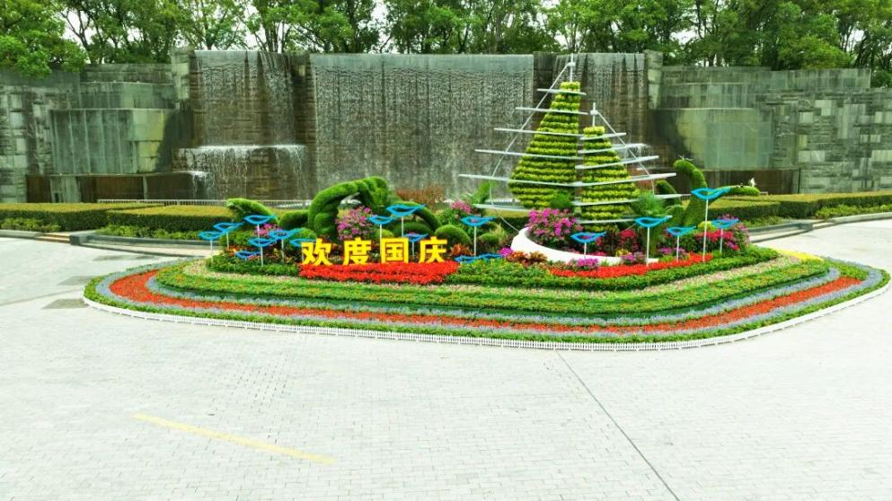 除了“中國紅”的熱烈點綴,“花”式景觀更讓園區(qū)煥發(fā)生機。在國賓路路口,國慶主題綠雕已正式亮相,成為街頭吸睛的風景線。綠雕以浪花和船帆為設計原型,游魚與飛鳥造型環(huán)繞其間,盡顯靈動生機,近3萬盆一串紅、矮牽牛、鼠尾草、向日葵等時令花卉組合成景,高低錯落,模擬層層花海漣漪的效果,寓意著園區(qū)乘風破浪的發(fā)展之勢。