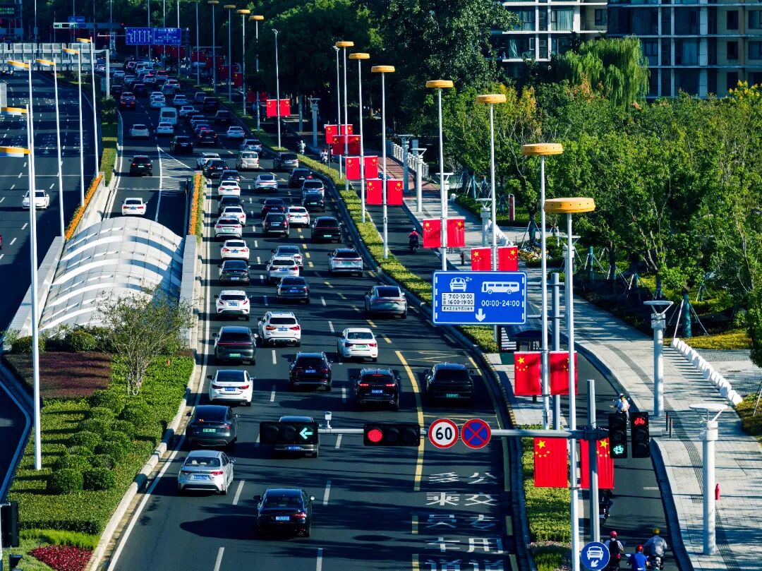 園區(qū)的大街小巷,道路兩側路燈桿上鮮艷的五星紅旗迎風飄揚,妝點了節(jié)日的喜慶。在蘇州大道等重要道路,三千余面五星紅旗整齊懸掛,與沿街綠植鮮花相映生輝,匯成一道道流動的風景線。