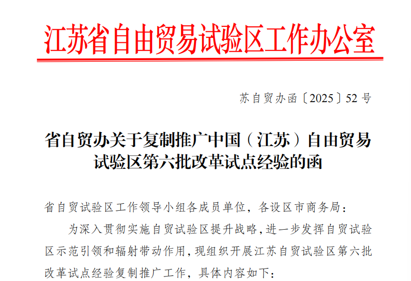 近期,省自貿(mào)辦發(fā)布中國(江蘇)自由貿(mào)易試驗區(qū)第六批改革試點經(jīng)驗,蘇州自貿(mào)片區(qū)有4項案例入選。本次入選的案例從稅務(wù)、金融、信用等關(guān)鍵領(lǐng)域協(xié)同發(fā)力,為企業(yè)提供全方位、高效率的政務(wù)服務(wù),體現(xiàn)了蘇州片區(qū)在打造市場化、法治化、國際化一流營商環(huán)境方面的制度創(chuàng)新成效。截至目前,蘇州片區(qū)已有63項案例在全省復(fù)制推廣。