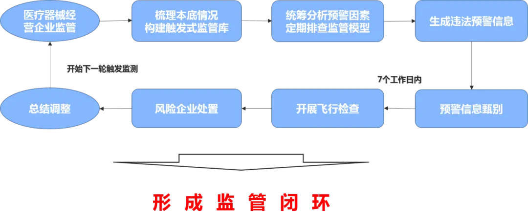 根據(jù)產(chǎn)業(yè)發(fā)展和監(jiān)管實(shí)際,按照“風(fēng)險(xiǎn)導(dǎo)向”原則,將觸發(fā)式監(jiān)管對(duì)象定位為主體數(shù)量多、監(jiān)管任務(wù)重的醫(yī)療器械經(jīng)營(yíng)企業(yè);重點(diǎn)聚焦年內(nèi)新備案的第二類醫(yī)療器械經(jīng)營(yíng)企業(yè),設(shè)置預(yù)警因素、建立監(jiān)管流程、明確處置方式,通過觸發(fā)式監(jiān)管降低風(fēng)險(xiǎn)隱患,引導(dǎo)企業(yè)合法合規(guī)經(jīng)營(yíng)。
