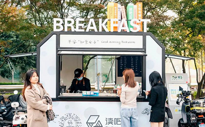 By scanning the QR code, customers can log on the online reading system of the festival and pick any book on the list to read while enjoying their breakfast.