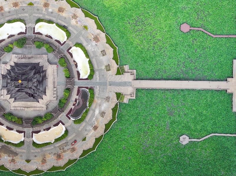 TheChongyuan Temple located on the Yangcheng Lake Peninsula is also a good placeto enjoy lotus flowers in summer.The temple issurrounded by lotus flowers. An aerial photo shows the temple is like a hugelotus flower lying in a lotus pond. The unique landscape here embodies the Buddhistculture, because the lotus flower is a symbol of spiritual awakening, purit...