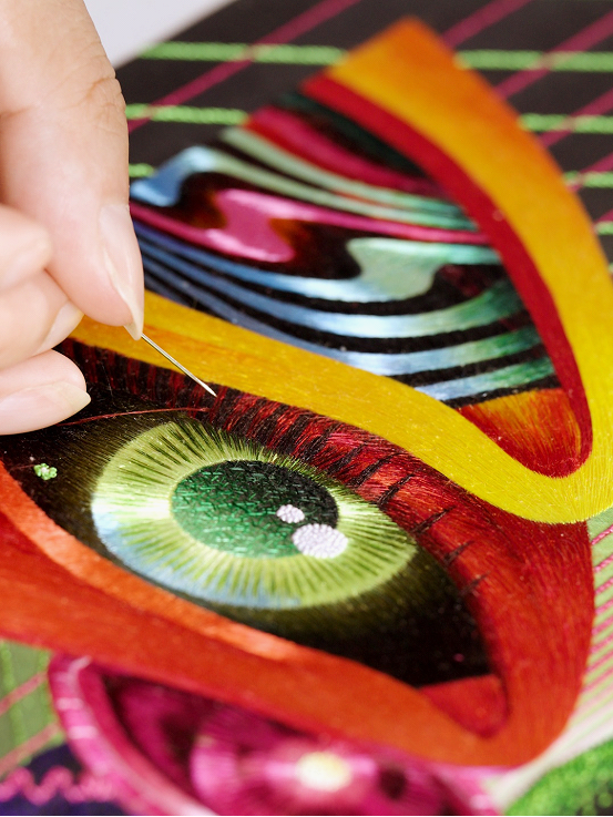 The Yao Silk, a representative brand of the Suzhou-style embroidery, a national intangible cultural heritage item, demonstrated the embroidering process on site.