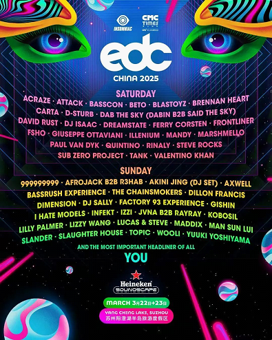 On the evening of Mar 23, as the final golden firework lit up the sky over Yangcheng Lake in SIP, the Electric Daisy Carnival (EDC) China 2025 wrapped up amidst the cheers of tens of thousands of fans.