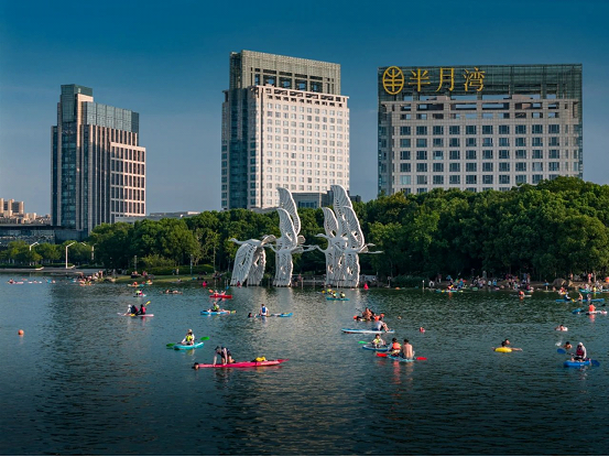 Lin, a programmer from Shanghai, said, “I had never expected to meet so many paddleboarding lovers on the lake in these hot days. Paddleboarding is becoming a new social currency for our generation.”