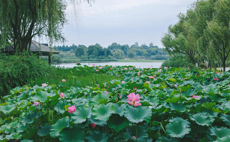Just across the road from Chongyuan Temple lies the Lianchi (Lotus Pool) Lake Park, a classic destination for lotus viewing. This 790,000-square-meter ecological park features 200,000 square meters of water surface, with its design rooted in Zen philosophy to create a serene and rustic ambiance with the charm of natural wilderness.