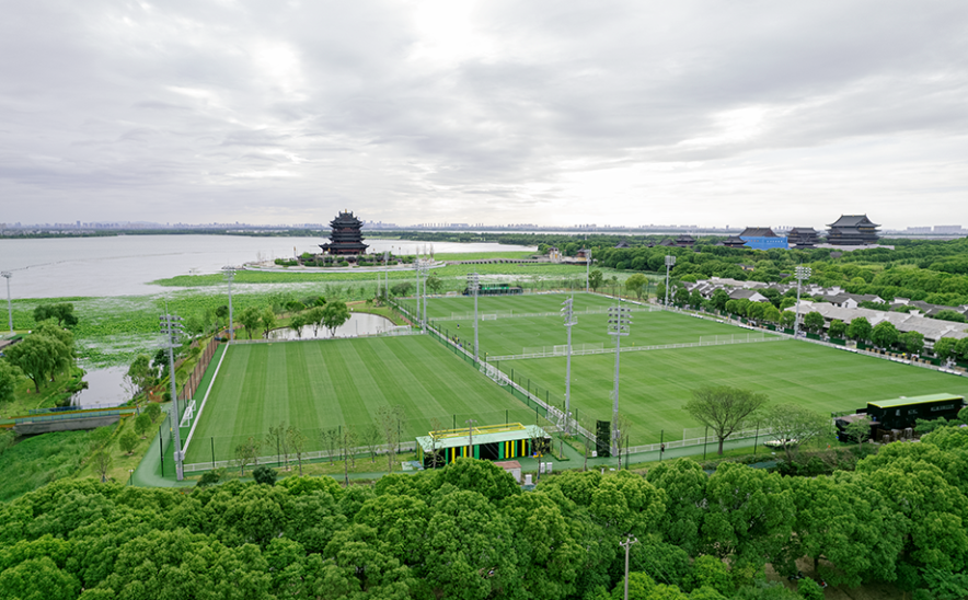 The Yangchenghu Peninsula Football Park, not far away from the tennis center, is dubbed “an engine for vitality”. It features five waterside natural grass football fields that meet the highest domestic standards, each achieving a FIFA quality score of over 90.