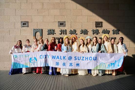 During the event, the participating students in traditional Chinese costumes visited  Suzhou City Wall Museum, enjoyed a holistic picture of Suzhou from the top of the Xiangmen Gate and listened to the tour guide’s introduction to the history of the city.