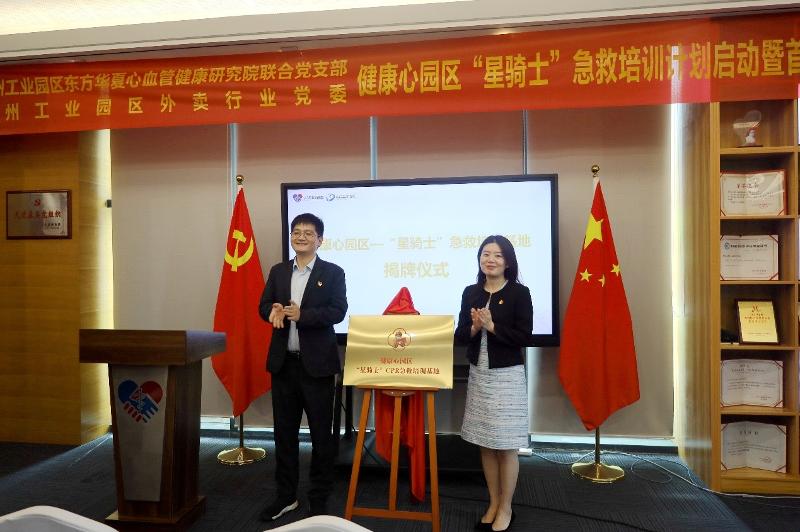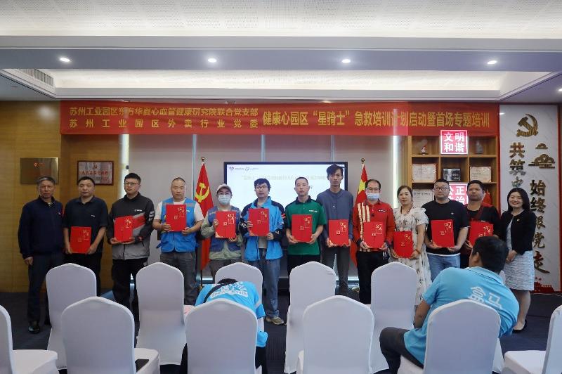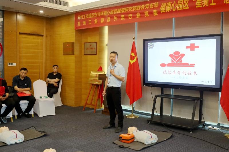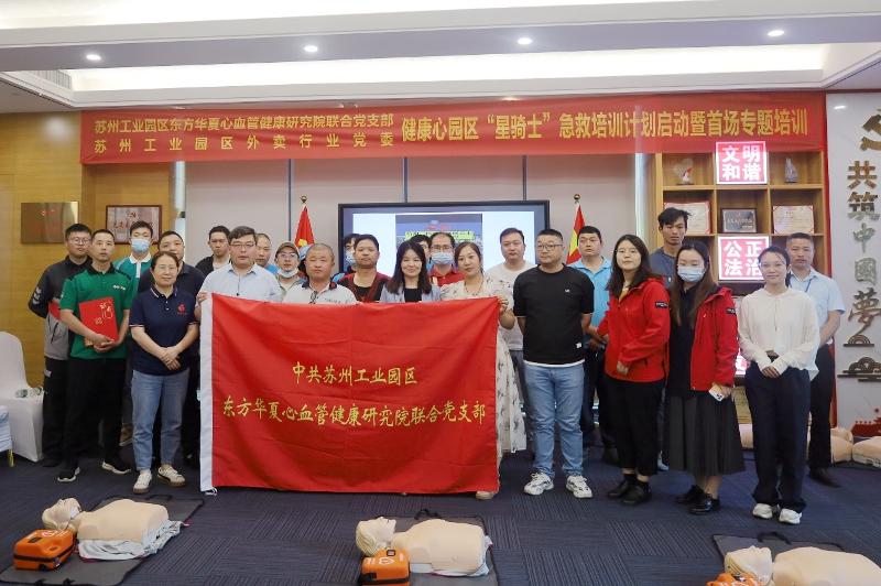 5月30日-5月31日下午,“星騎士”急救培訓計劃啟動暨首場專題培訓會正式啟動,蘇州工業園區組織部組織處處長、蘇州工業園區東方華夏心血管健康研究院聯合黨支部書記、蘇州工業園區民企黨委委員、蘇州工業園區外賣配送行業黨委書記等出席活動,20名美團、餓了么、盒馬鮮生等“星騎士”學員學習CPR急救技能等相關知識。