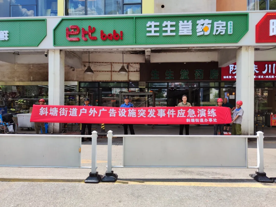 積極開展戶外廣告設施突發性事件應急響應處置實戰演練,緊扣當前防汛防臺關鍵期,基層街道模擬某處廣告牌因臺風侵襲造成廣告牌傾斜隨時掉落的險情,第一時間啟動應急預案,搶險救援組、警戒疏散組等專業搶險部門根據預案部署和職責分工,默契配合,在最短時間內拆除存在隱患的戶外廣告牌,進一步樹牢安全生產意識,提升搶險救災能力。