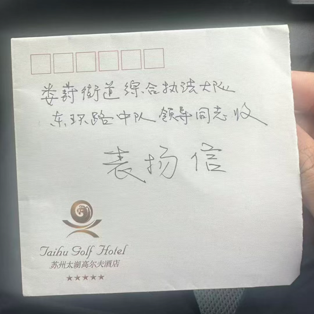 近日,婁葑街道綜合執法大隊隊員許霄、陳紫陽收到一封老人的感謝信。原來,老人之前在東環路美好廣場存在非機動車輛違規停放的行為。當日,因現場無法找到車輛所有人,車輛已被執法人員暫時停放至指定停車場。現場設置有禁止非機動車輛違規停放的提示牌,提醒市民規范停放,告知市民取車等相關信息。次日,老人主動向隊員許霄、陳紫陽咨詢,當了解到老人身體不適,無法前往指定停車場時,許霄、陳紫陽主動將老人送至停車場,協助老人順利辦理了取車手續。并將老人和車輛安全送回美好廣場。老人深受感動,專程送來表揚信,對公正執法和熱心幫助表示衷心感謝。