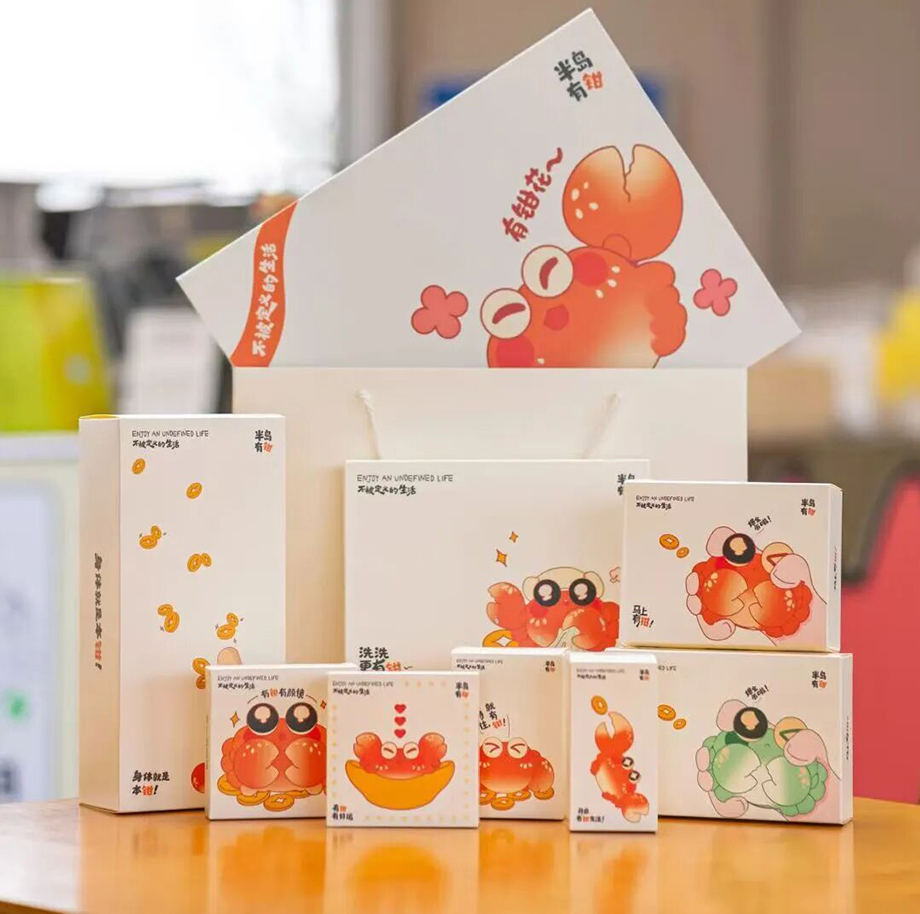 尤為引人注目的是蘇州陽澄湖半島旅游度假區推出的“新蟹八件”文創套裝,靈感來源于傳統食蟹工具“蟹八件”,該套裝涵蓋八件實用好物:冰箱貼兼開瓶器、公蟹造型毛絨掛件、母蟹造型毛絨掛件、健康錘、便攜擦臉巾、化妝鏡、手機支架以及陶瓷杯墊,以創意形式重構“蟹”文化,為日常生活注入雅趣與新意,開啟一段有“鉗”有味的江南生活體驗。